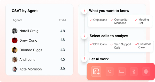 Automatically assess customer satisfaction with AI-powered satisfaction scores, real-time monitoring and filtering capabilities that surface at-risk conversations and track team performance.