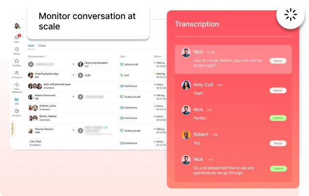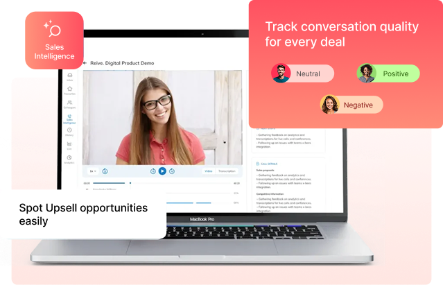Get automated AI-powered transcriptions and sentiment analysis, as well as instant suggestions based on the content of the call, giving you the competitive edge in your sales calls.